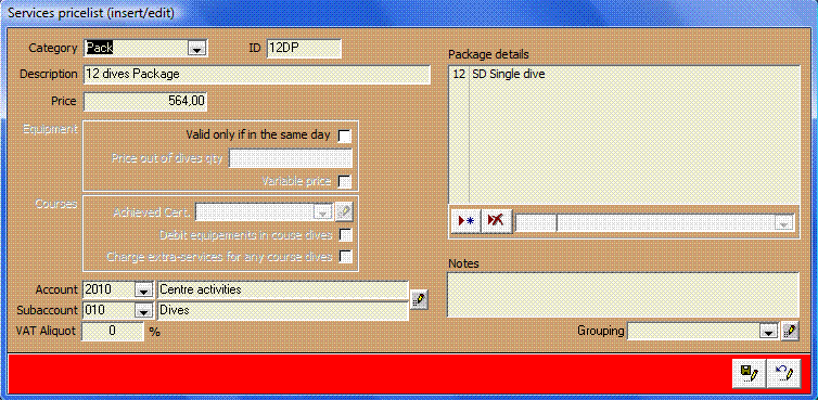 In the service category "others" you can choose to enter the price and description manually during billing (e.g. useful for the sale of "tourist packages" that include services that are just reselled by the center, such as plane tickets).