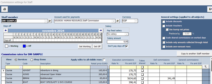 example, to assign same rates to all the divemasters, or instructors, and so