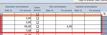 percentage rate of selling commission in one row, the value is copied to all