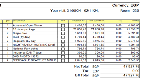and the final invoice of the guest will be in the same selected currency.